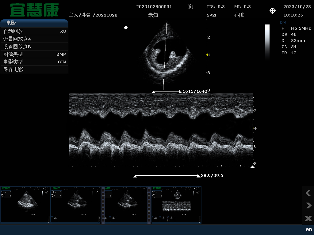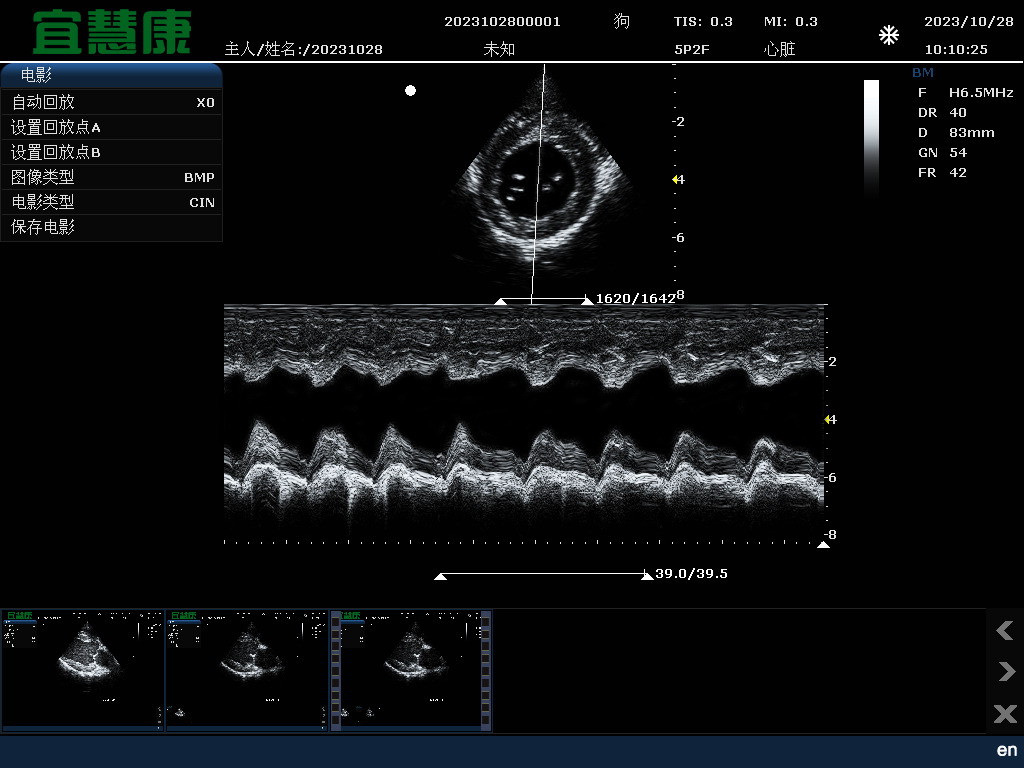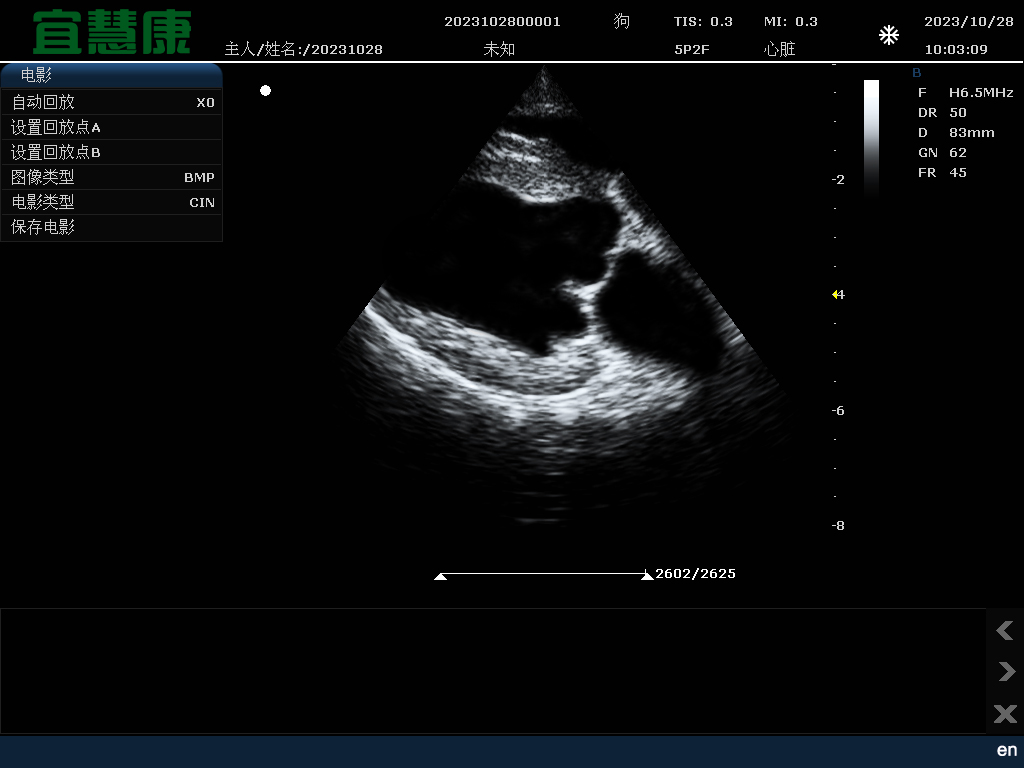 配备完整的心脏测量及报告模板,内置回归公式可明确不同体型宠物在测量时的正常范围,并可根据测量值自动推算可能出现的疾病,为医生提供更智慧的诊断辅助。